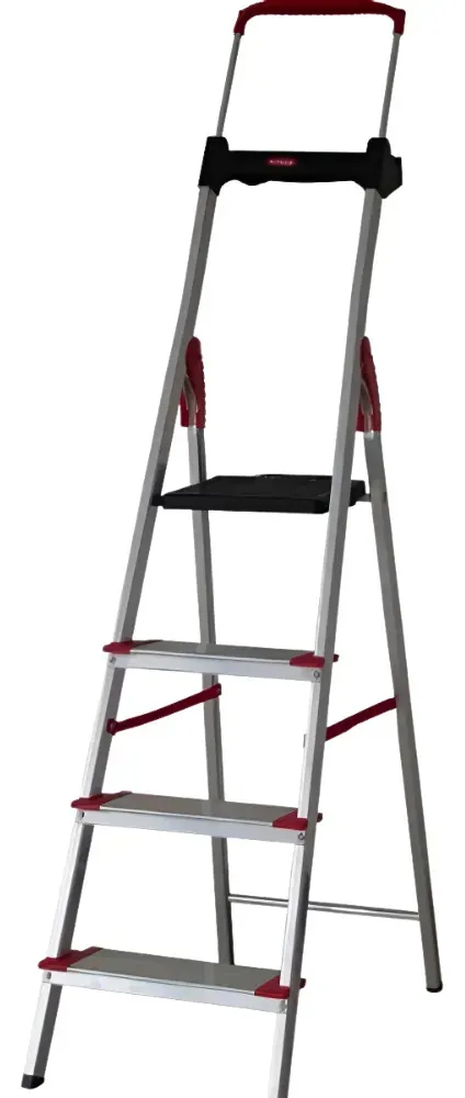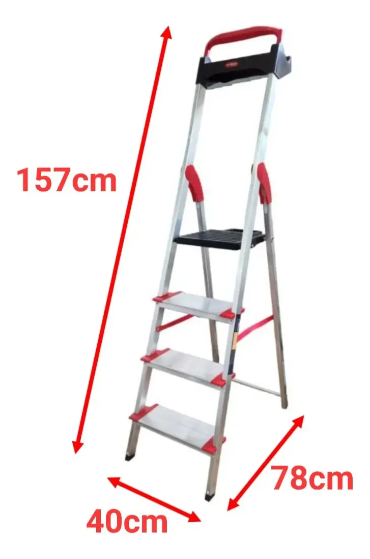 Escada De Alumínio 4 Degraus Dobravel Comfort Alumasa A linha de escadas Comfort da Alumasa é produzida em alumínio e polipropileno de alta qualidade, garantindo estabilidade e segurança. O diferencial é a bandeja multiuso, que facilita o manuseio de ferramentas, baldes e acessórios durante o uso.
